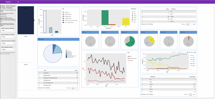 A web app for visualizing pollution data from the Environmental Protection Agency. In this application you will be able to see graphs, charts, and tables that illustrate how air quality around the US has changed since the early 1990s.